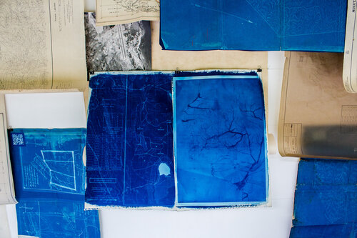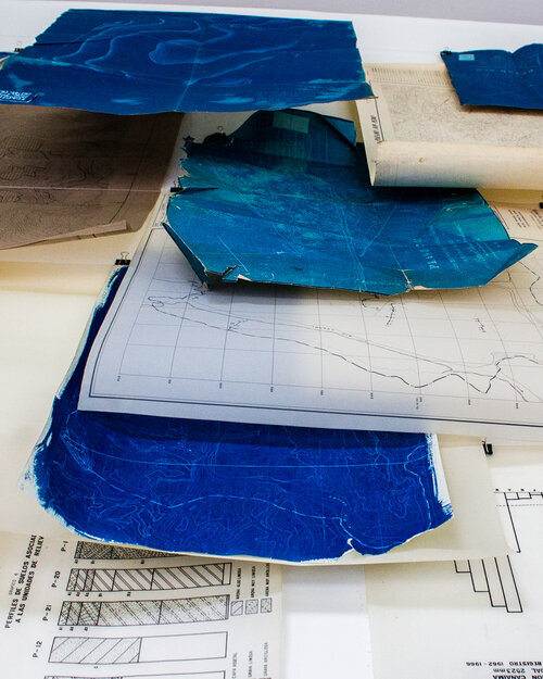 I use the concept of dissipative structures, coined by the physicist Ilya Prigogine; which are described as stable systems away from equilibrium. These, by increasing their energy, become unstable and from that point new forms of life are usually generated. Through the reorganization and juxtaposition of the elements in space and the generation of new maps of non-existent territories, I reverse the original meaning of these maps to propose nonlinear trajectories, indeterminate and in tune with a world that is continually transforming, opening time-space portals using QR codes that lead to sound files in the cloud and making use of augmented reality technology.
